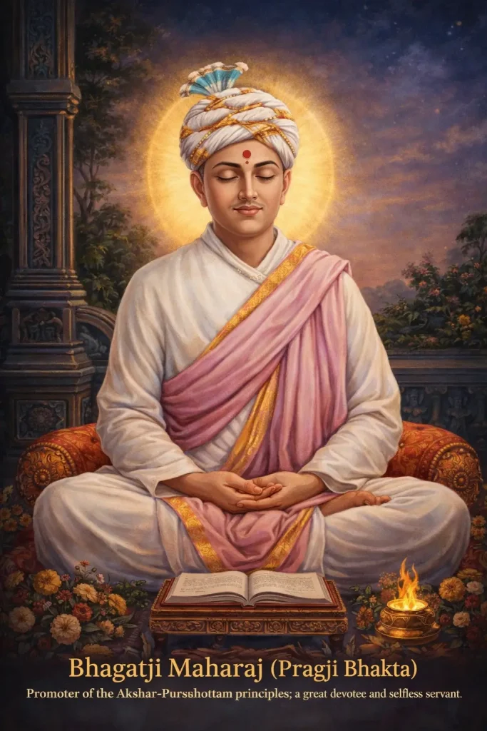 Bhagatji Maharaj, also known as Pragji Bhakta, was one of the most devoted and influential spiritual followers in the tradition of the Swaminarayan Sampradaya. Born in 1829 in the town of Mahuva in Gujarat, he grew up in a humble family and spent much of his early life engaged in simple work as a craftsman. Despite living an ordinary household life, his heart was deeply connected with spirituality, devotion, and service. From a young age he demonstrated strong faith, humility, and compassion, qualities that later defined his role as a respected spiritual teacher. His dedication to God, combined with his sincere love for devotees, allowed him to inspire many people to live a life of faith, discipline, and moral values.